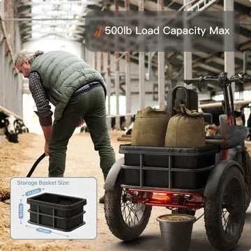 HEAVY-DUTY PICKUP-CLASS TRICYCLE: Constructed from durable aluminum alloy and engineered with a Golden Ratio chassis for optimal stability, this tricycle supports a standard load capacity of 350–500 lbs. A rear-wheel differential ensures balanced handling during turns and on uneven surfaces. The hydraulic braking system provides quick stopping power and enhanced control. For added convenience, a spacious rear storage basket (19.68" x 17.5" x 10.2") is included—perfect for groceries, gear, or cargo.
